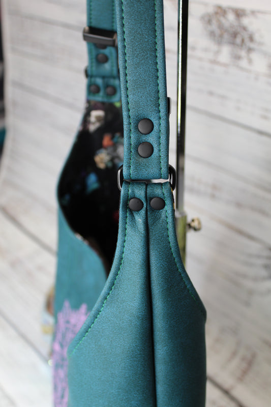 Embroidered Hobo Bag - Floral 20 Sided