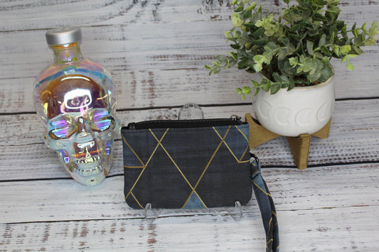 Mini Zip Wristlet - Blue Geometric